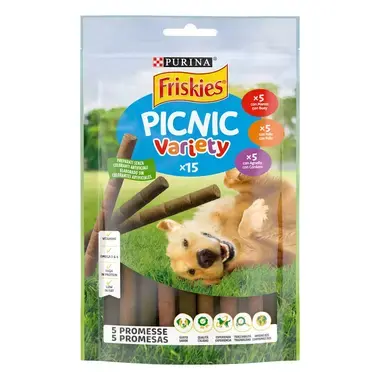 FRISKIES Picnic Variety é uma seleção deliciosa de snacks com elevado teor de proteína que o seu cão irá adorar!