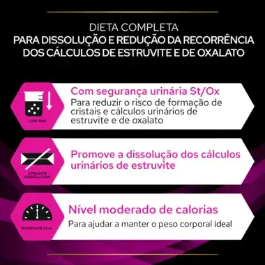- Com segurança urinária St/Ox: Para reduzir o risco de formação de cristais e cálculos urinários de estruvite e de oxalato.